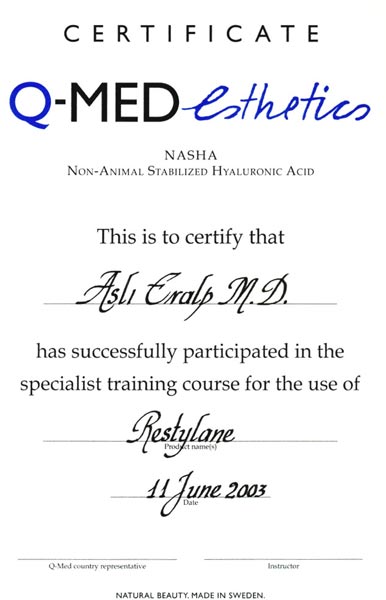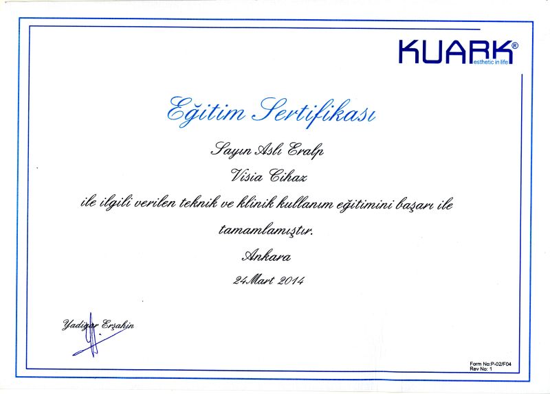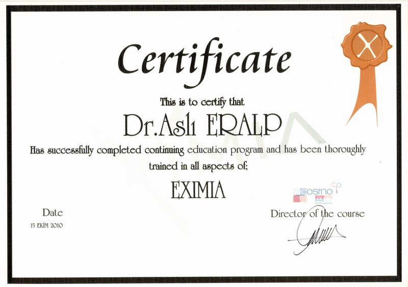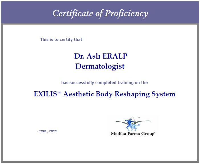 2011-010 Exilis Yüz Probu Kullanım Sertifikası