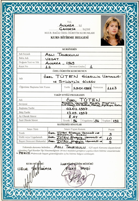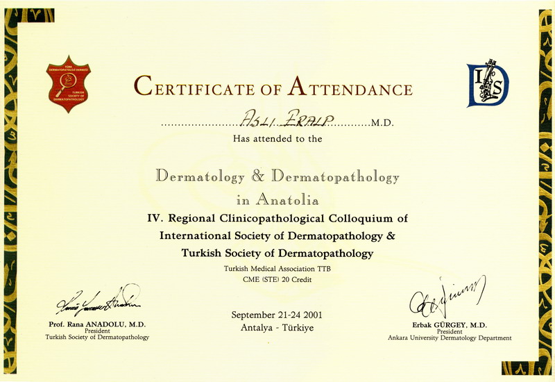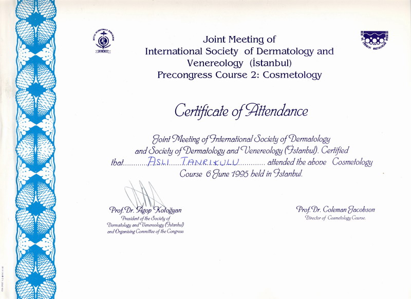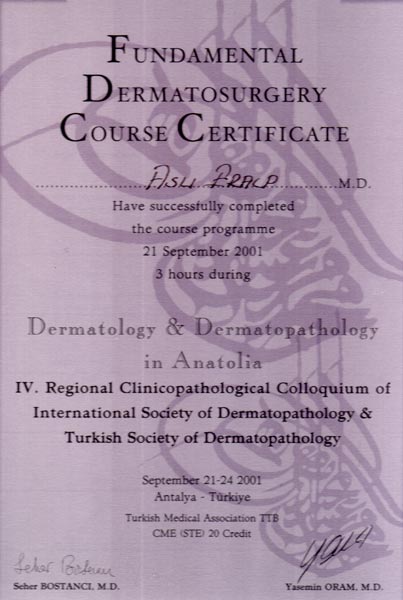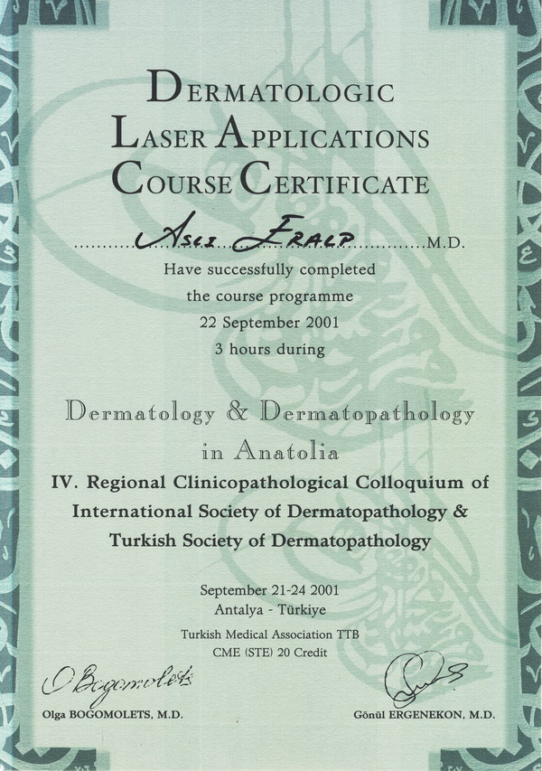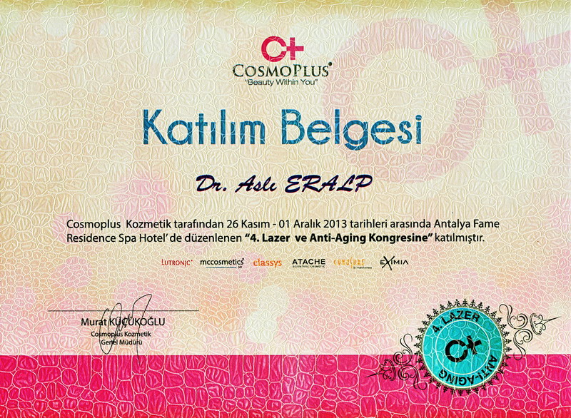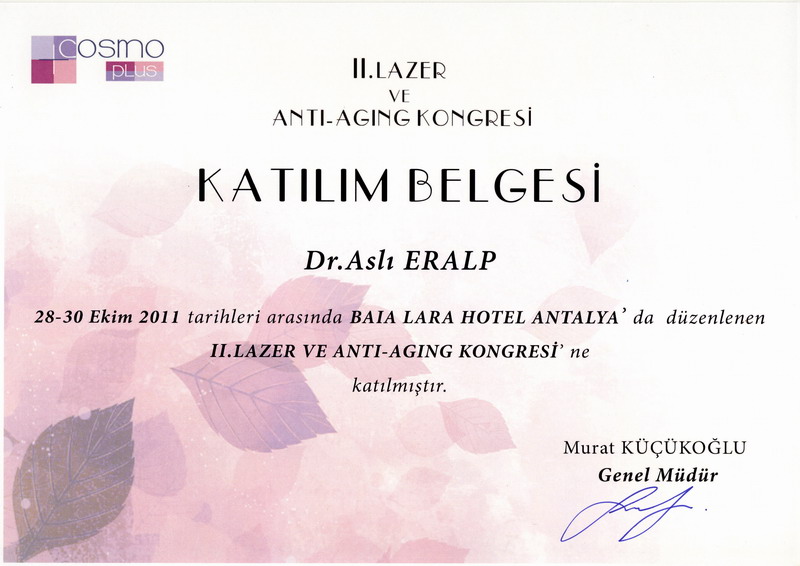 Kozmetik ve Lazer Kurs Katilim Belgesi