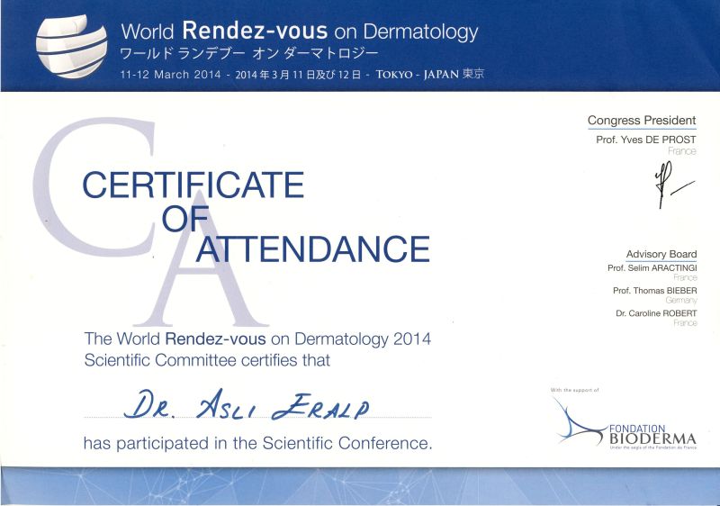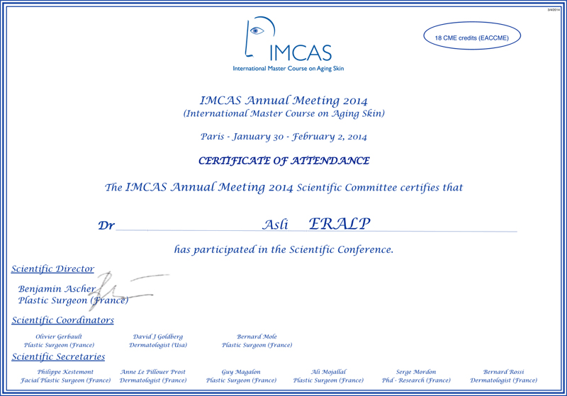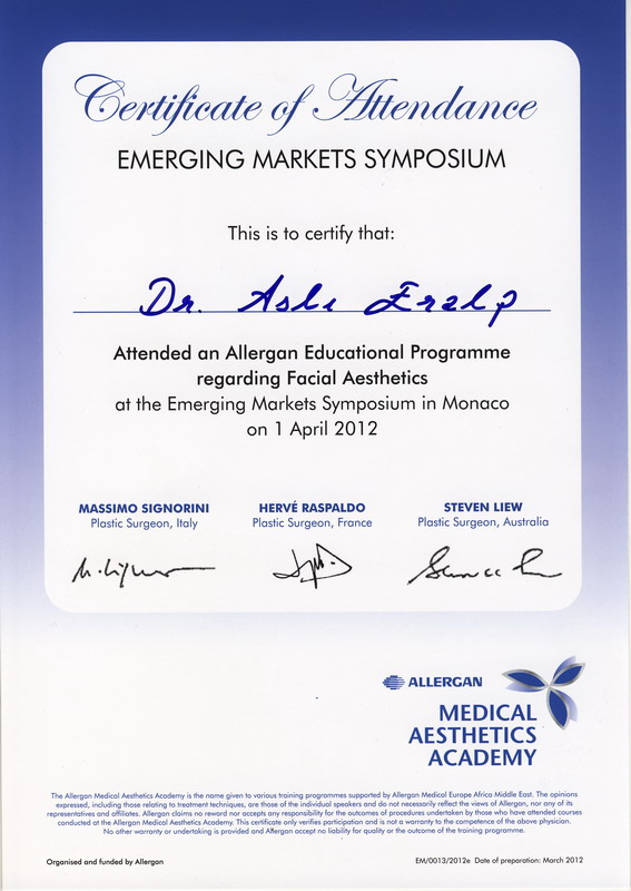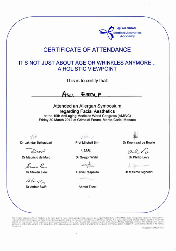 2012-001 Facial Aesthetics Katılım Sertifikası