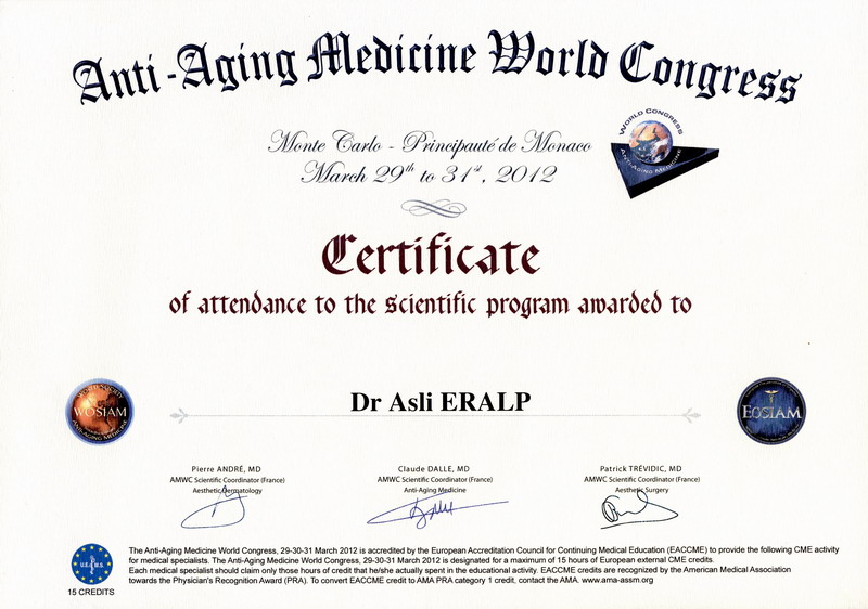 2012-002 Dünya Anti-Aging Kongresi Katılım Sertifikası