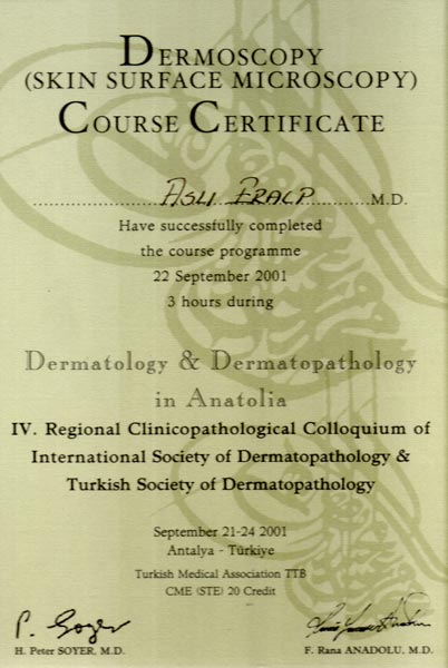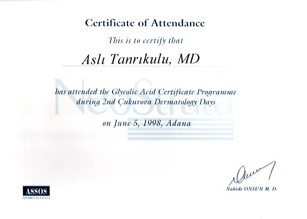 Peeling ve Skleroterapi Kurs Katılım Belgesi