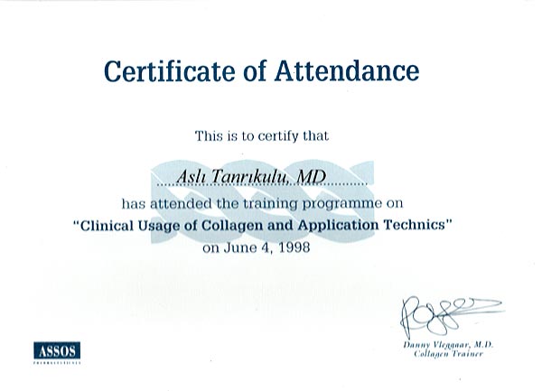Botulinum Toksin Uygulama Kursu Katilim Belgesi
